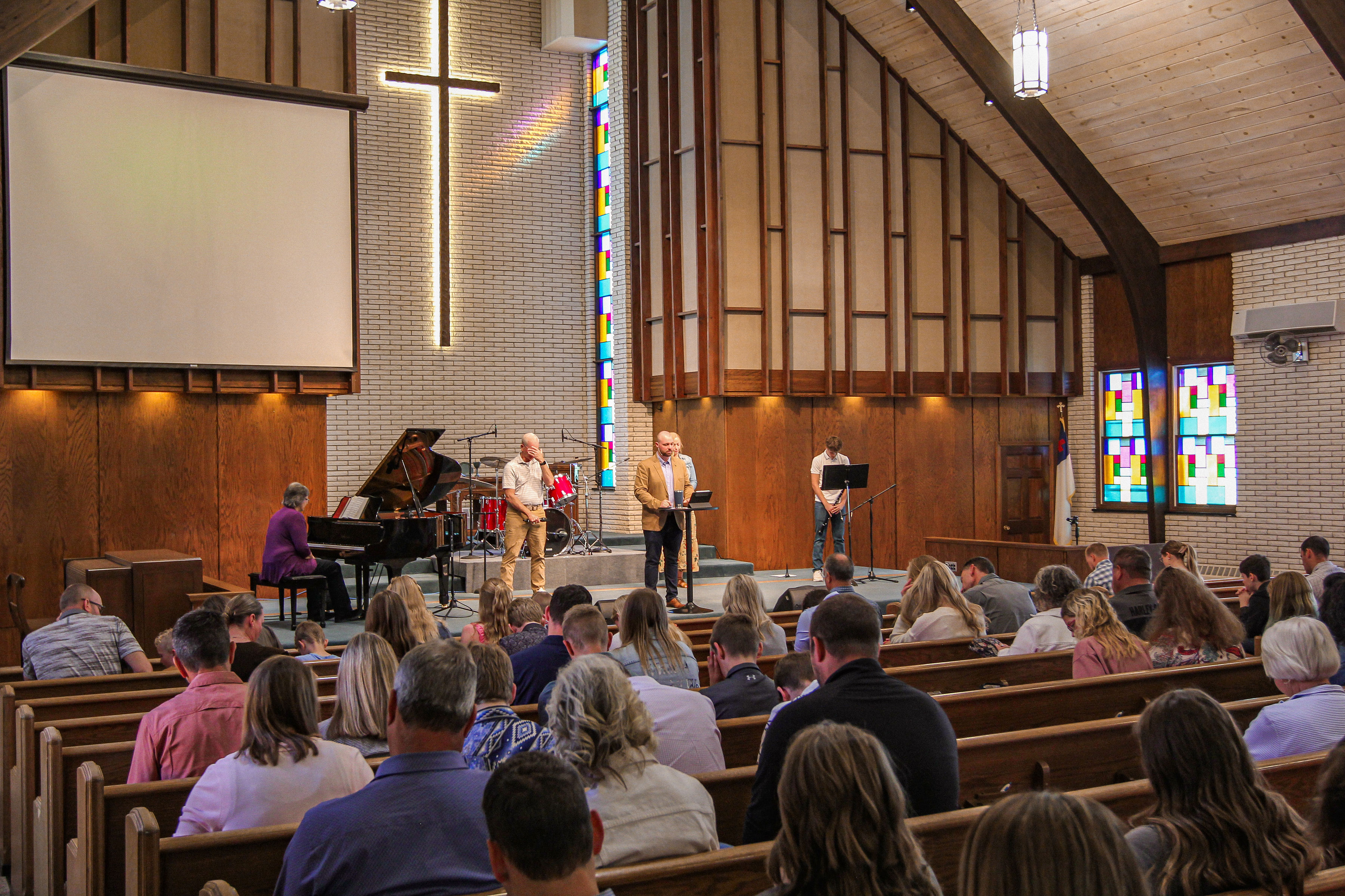On any given Sunday you will see button-down shirts and dresses alongside jeans. Wear what you’re comfortable in and expect to be warmly welcomed.